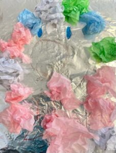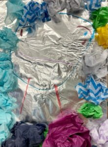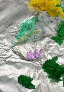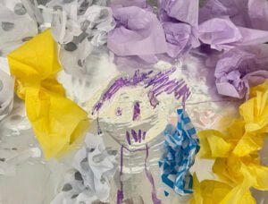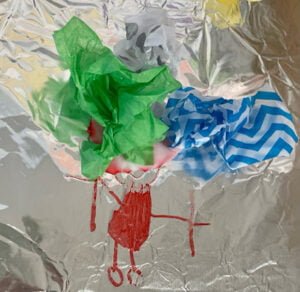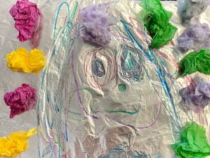 After their visit, these budding artists took tissue paper, tinfoil, and other art materials back to the preschool to create their self-portraits.